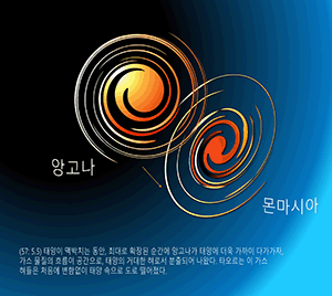 태양이 최대로 확장된 순간에 앙고나가 가까이 다가가자, 가스 물질이 거대한 혀처럼 분출되어 나왔다. 이러한 가스 혀는 태양 속으로 도로 떨어졌고, 바깥 부분들은 운석들이 되어 태양의 둘레를 돌았다.